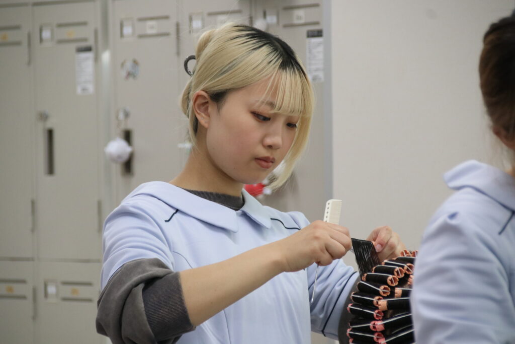 ワインディング技術で、入学時は巻くのに時間がかかり、たった1本巻くだけでも精一杯でしたが、いつの間にか1本20〜30秒くらいで巻けるようになっていることに気づいたとき成長を感じました。