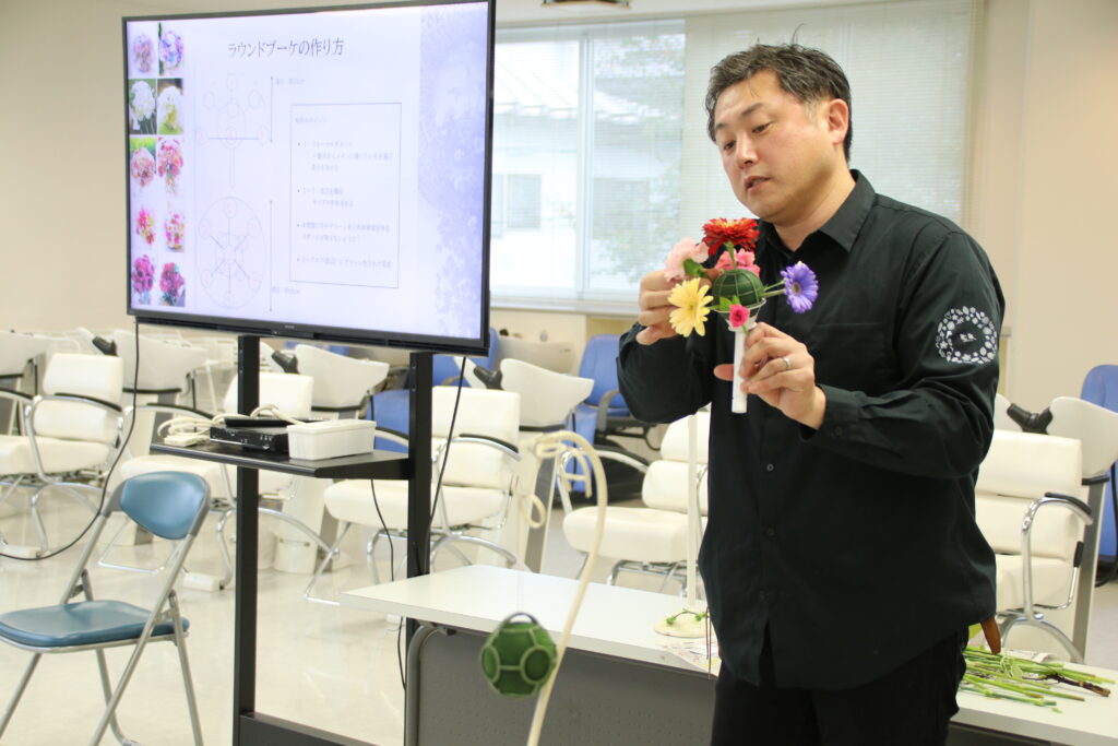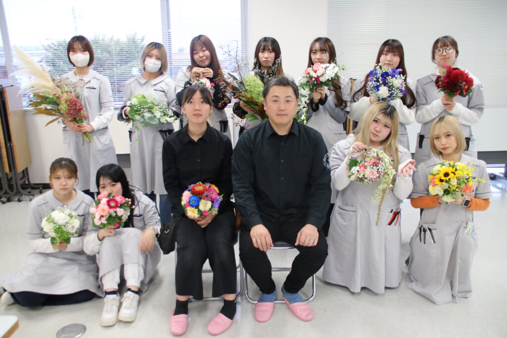 山形県寒河江市のお花屋さん「花泉」の大泉拓也先生を講師にお迎えし、本格的な「ブライダルブーケ制作」の特別授業を行いました。