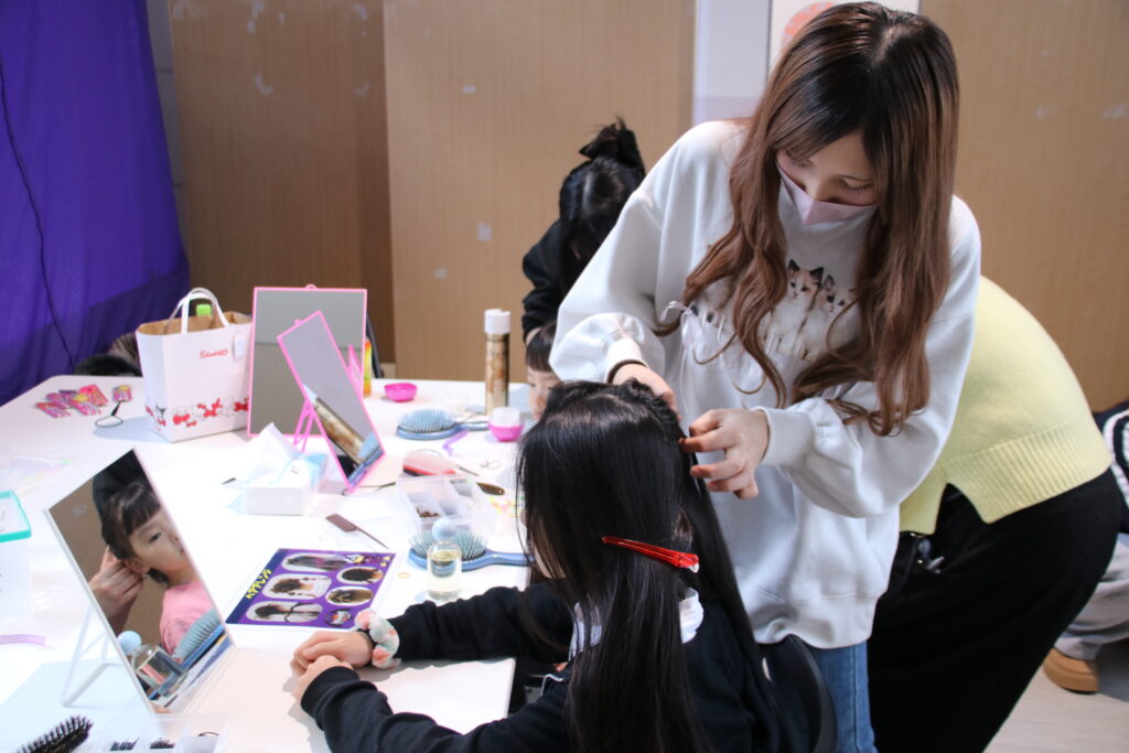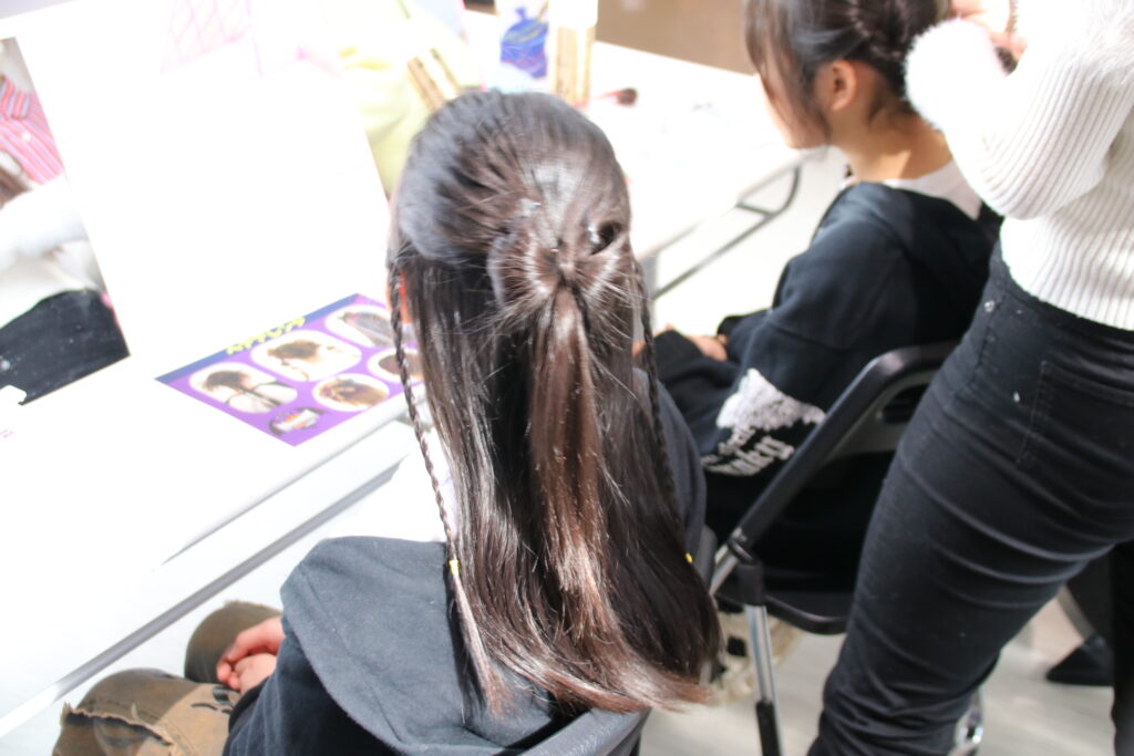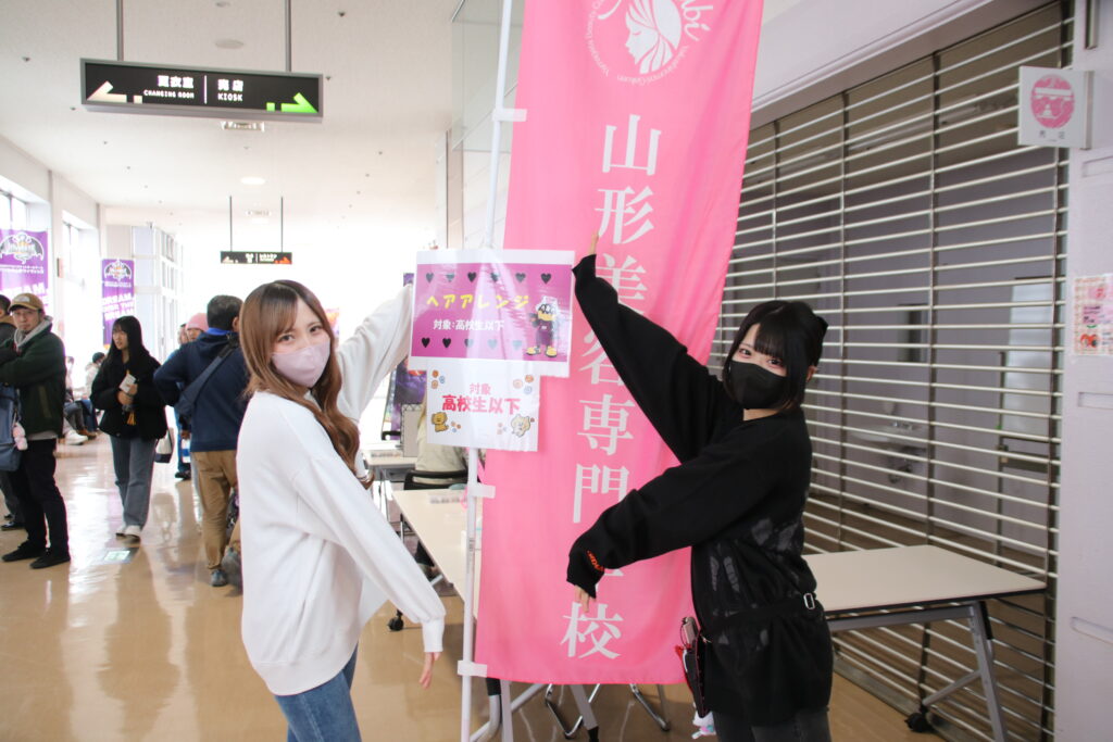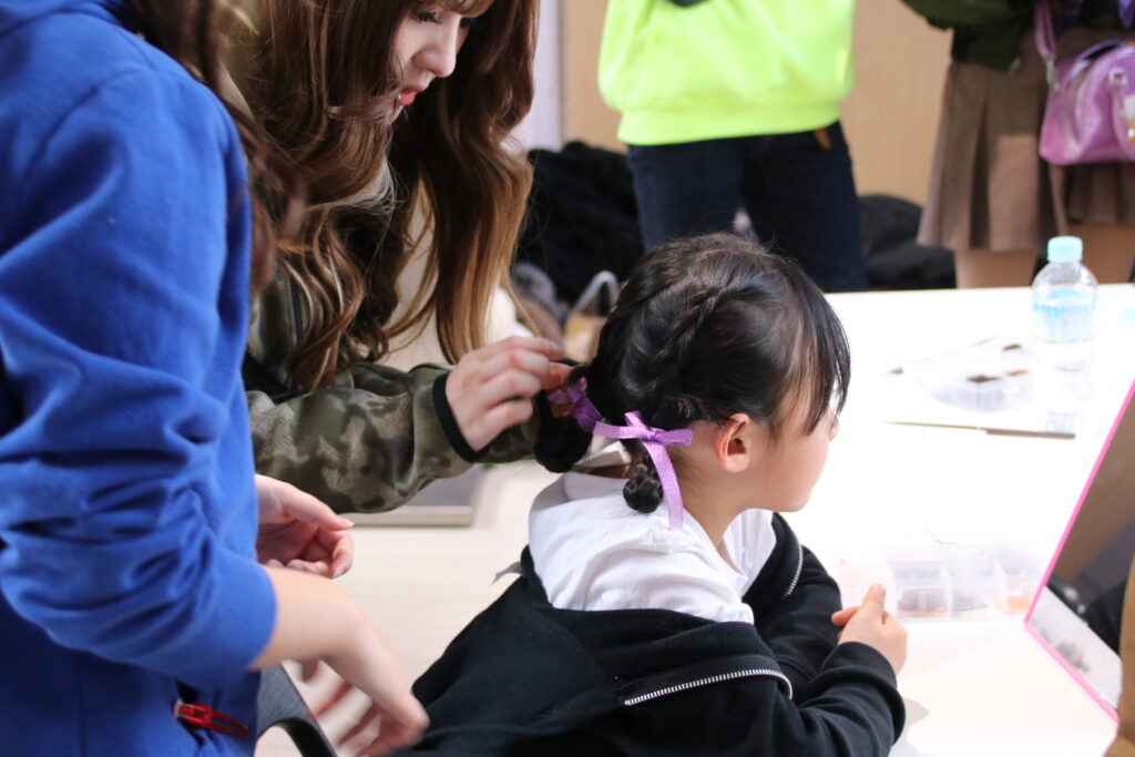 山形美容専門学校の特設ブースにて「可愛く、優しく、ときめく」を合言葉に、高校生以下を対象にヘアアレンジをさせていただきました。