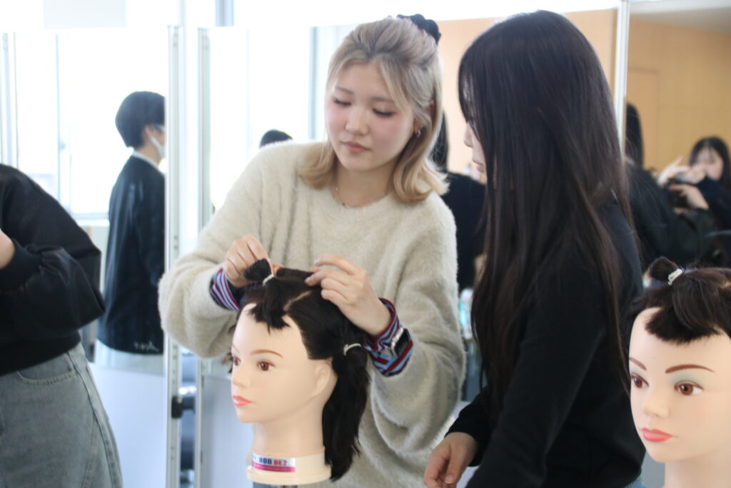 後半に行われた美容技術体験会では、参加者の皆さんが一生懸命ワインディングに取り組む姿が印象的でした。